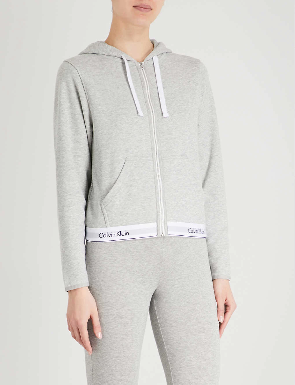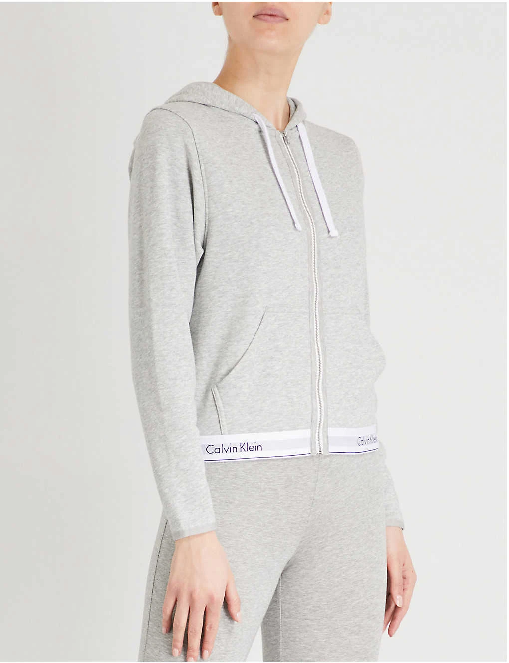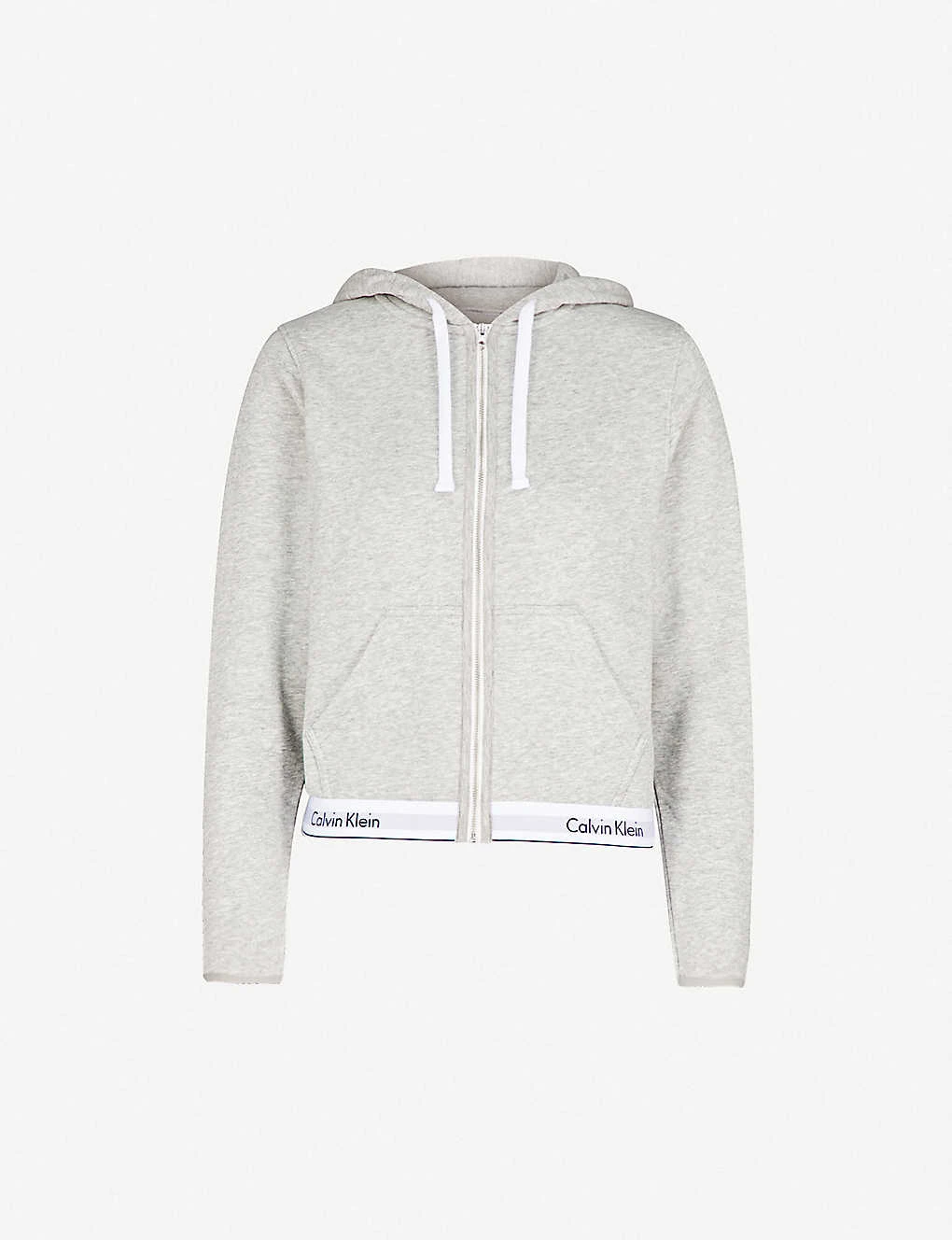 Calvin Klein cotton-jersey hoody Exposed zip fastening at front Drawstring hood, long sleeves, elasticated cuffs, split kangaroo pocket at front, stitched seams, branded elasticated waistband 91% cotton, 9% polyester; 60% cotton, 40% polyester Machine wash Size 8: Length 23″” Model is 5ft 10″” and wears a size 8