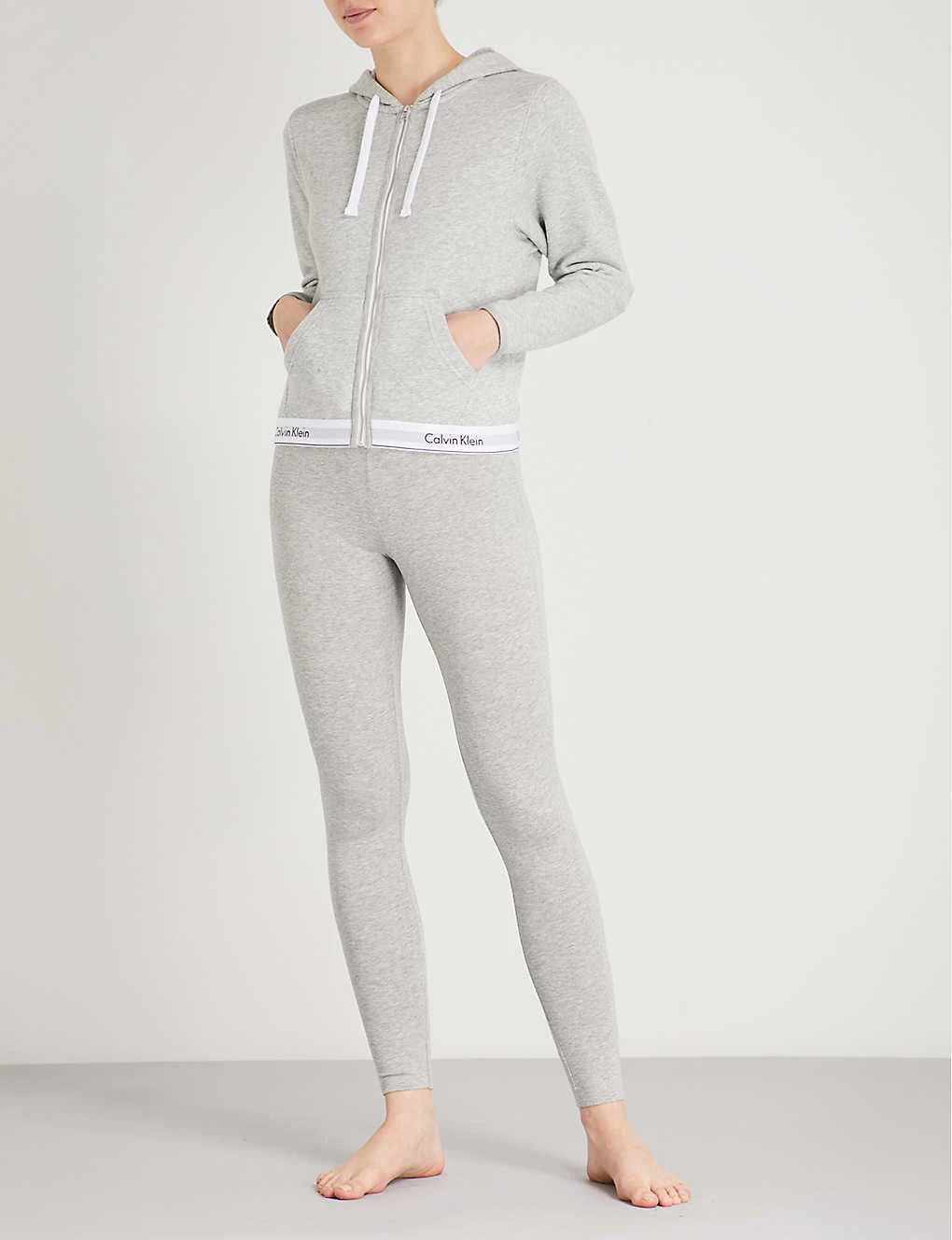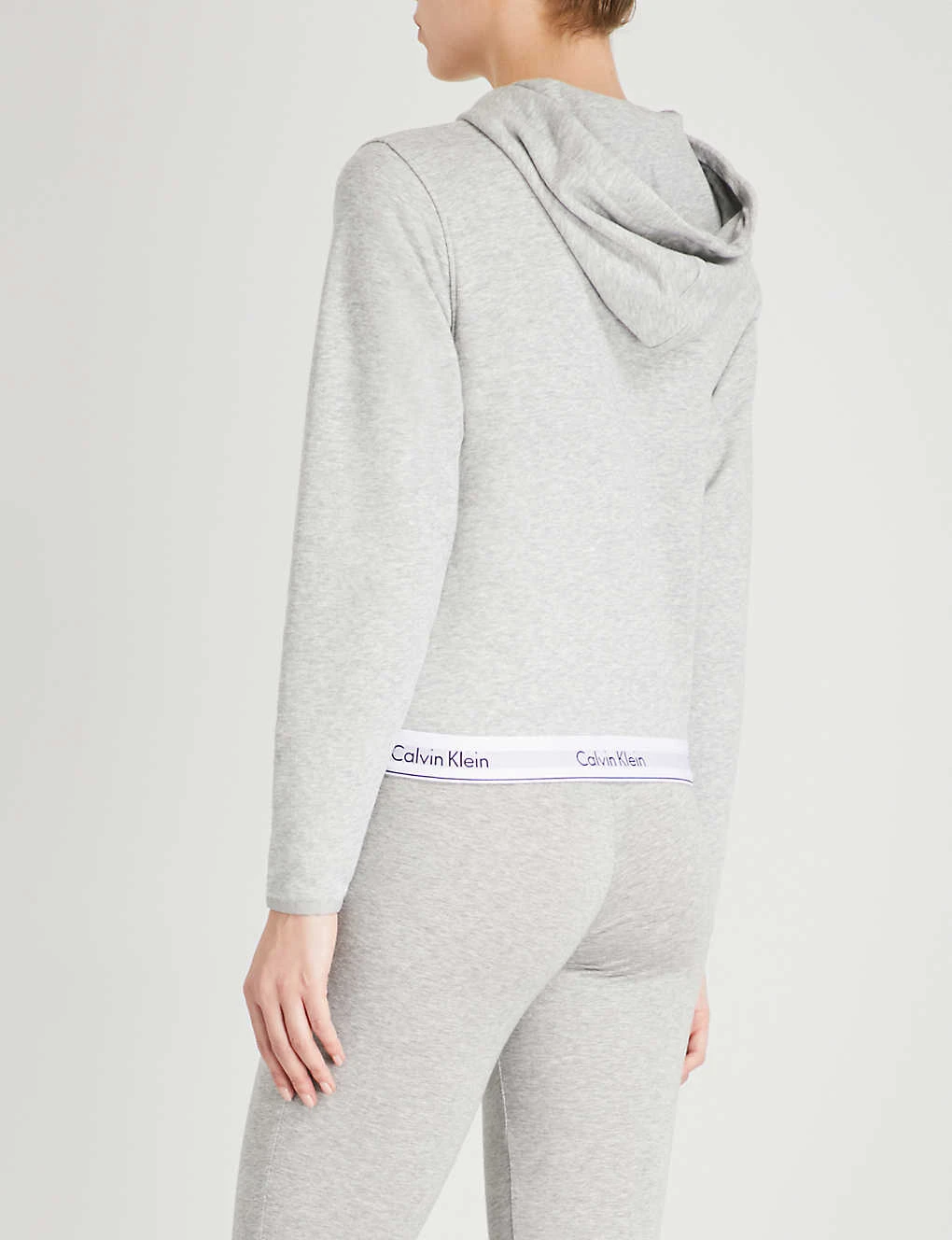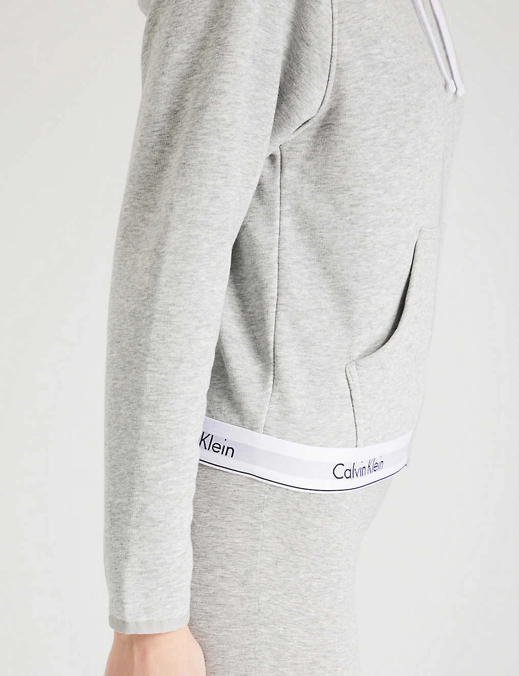 Calvin Klein cotton-jersey hoody Exposed zip fastening at front Drawstring hood, long sleeves, elasticated cuffs, split kangaroo pocket at front, stitched seams, branded elasticated waistband 91% cotton, 9% polyester; 60% cotton, 40% polyester Machine wash Size 8: Length 23″” Model is 5ft 10″” and wears a size 8