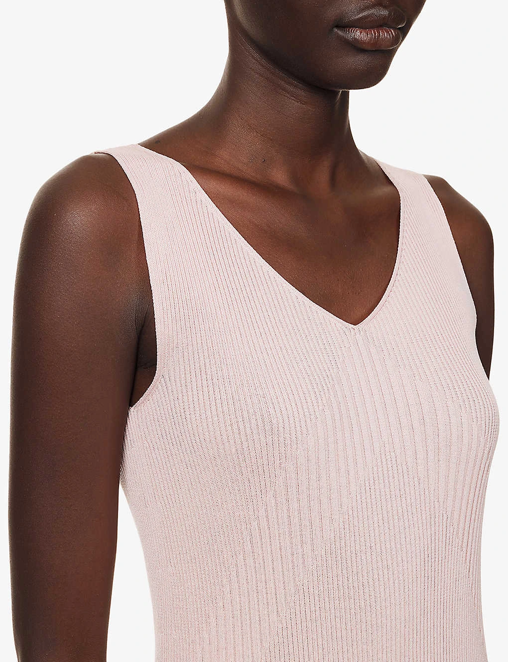 - Regular fit, V-neckline, sleeveless, low V-cut back, ribbed knit texture