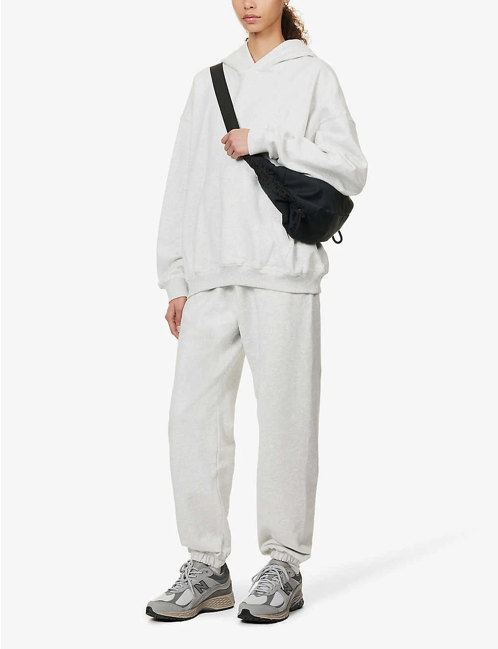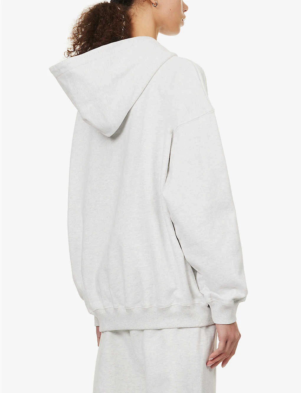 - Oversized fit, hood, dropped shoulders, long sleeves, tonal brand text embroidery at front, kangaroo pocket at front, all-over marl pattern, ribbed trims