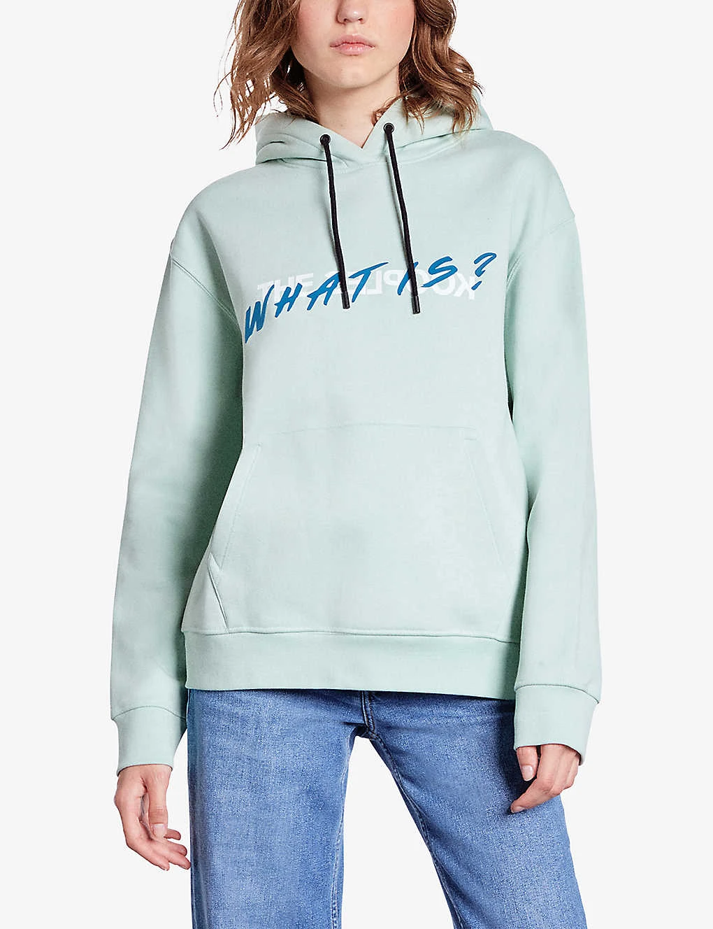 - Hooded, drawstring fastening, long sleeves, slogan-print at the front, ribbed hem, relaxed fit