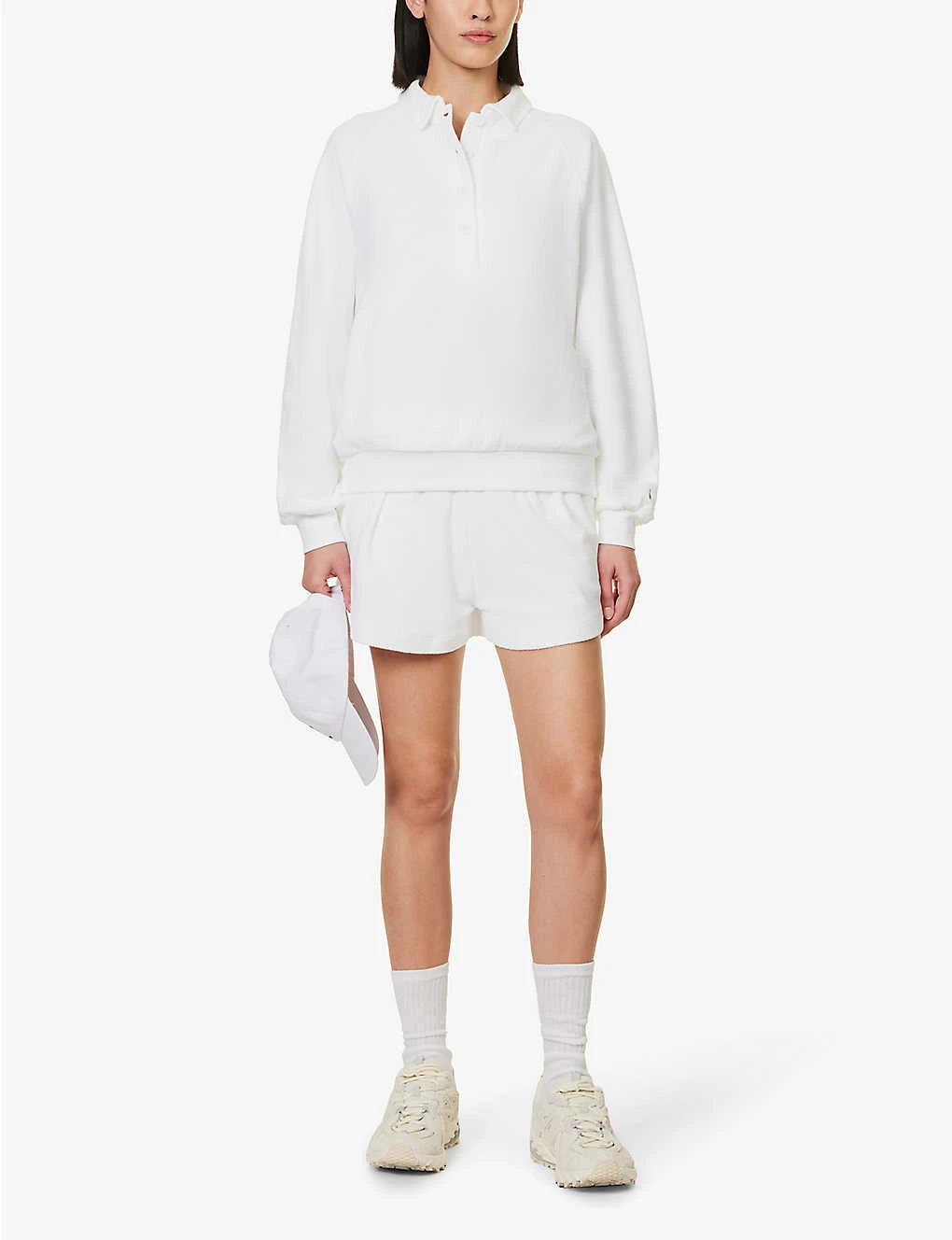 - Regular fit, collar, long raglan sleeves, embroidered at cuff, all-over towelling texture, ribbed trims